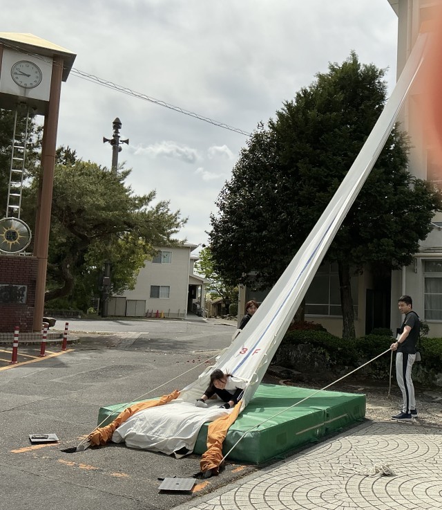 避難袋の設置や防火シャッターの動作確認等、我々教員も何度も訓練を行い、非常時に備えてまいります。