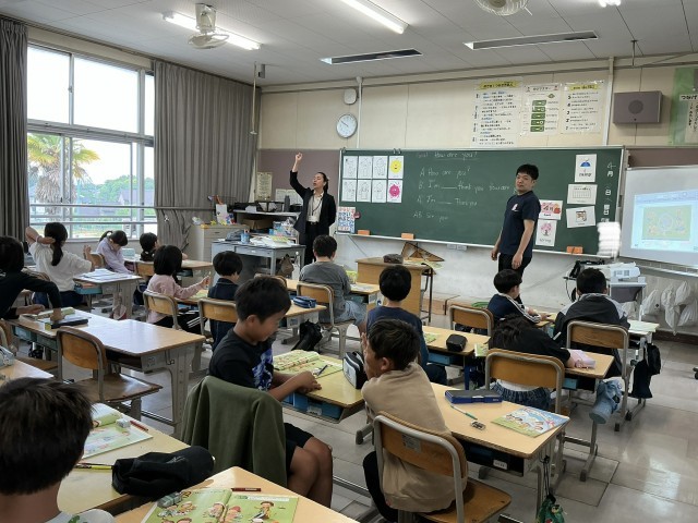 3年生は、外国語活動の時間に、ALTの先生と一緒にあいさつや自己紹介の仕方を練習していました。ペアで楽しそうに英語の表現を確認していました。