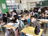 数年前より、たてわりグループごとに各教室に分かれて実施しています。