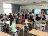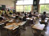 4年生が、社会科の「都道府県」の単元で学んだことをクイズ形式でまとめ、6年生に発...