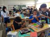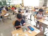 タブレットを使っての活動です。 キーボードを使って、タイピングの練習をしている児...