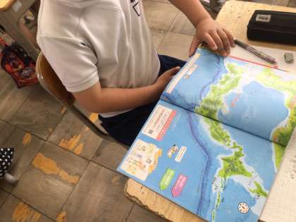 4年生の社会では、日本全国の様子を地図で確認し、その特徴を調べています。