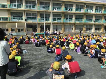 28日の一斉下校時に、前期委員会い院長の任命を行いました。