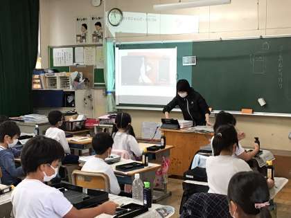 児童は先生や映像の説明を真剣に見たり聞いたりしていました。