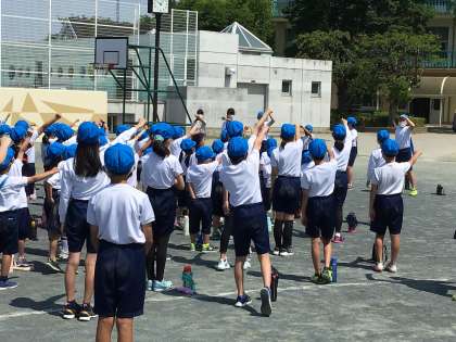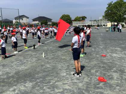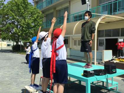 礼や体操の動きがスムーズにでき、昨日の練習の成果が出ていました。