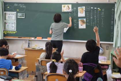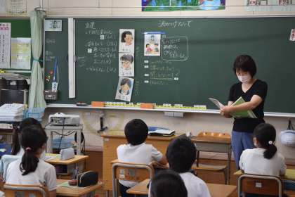 朝日小学校では、「担任は学年みんなの担任」という姿勢で、道徳の授業を3人の担任が学級を交換して行います。3クラスを3週かけて授業をします。