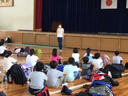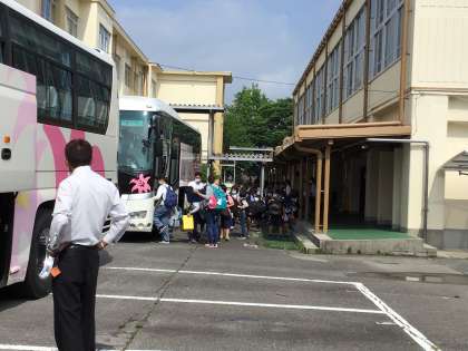 出発式では、お互いの気持ちを思いやること、多くの人の助けがあって行く野外学習なので、感謝を言葉と行動で示そうと話がありました。