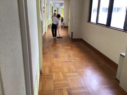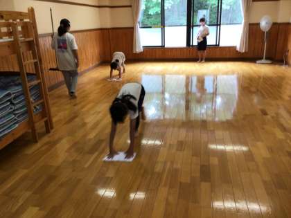 お世話になった宿泊棟に感謝し、清掃活動です。