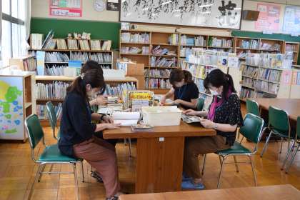 暑い中、図書整備ボランティアの方が来てくださり、故障した本を直してくださいました。元通りにはなりませんが、少しでもきれいにして、朝日っ子のみなさんにたくさん本を読んでもらいたいと、作業していただきました。ありがとうございました。
