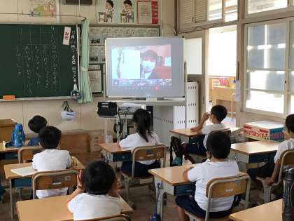 20日の1時間目の最初に、オンラインで全校集会を実施しました。
