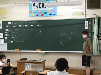 タンポポは飛んでいくけど、アサガオは下に落ちることをみんなで確認していました。