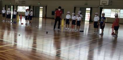 豊田ボッチャ協会の方を講師に迎えて、4年生が、ボッチャを体験しました。丁寧に教えてくださったので、子どもたちはすぐに覚えて、試合ができました。