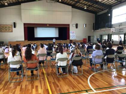 多くの保護者の皆さまに参加していただきました。終了後、講師と保護者による懇談会があり、真剣な表情で聞いている姿がありました。