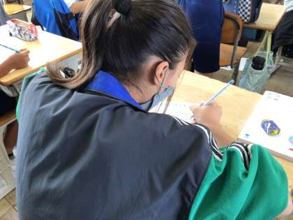 今日は6年生が自分に手紙を書いていました。10年後、22歳のあなたたちは何をしているのでしょうか。大学生かな、それともお仕事しているのかな。そのとき、平和で安心な世の中だといいです。