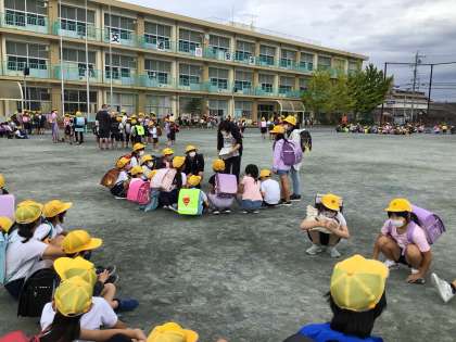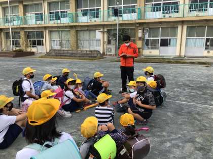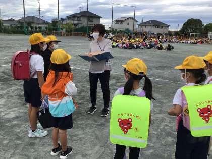 通学班ごとに集まり、担当の先生と一緒に困っていることの解決に向けて話し合ったり、危険箇所の確認をします。子どもたちからの情報がとても頼りになります。