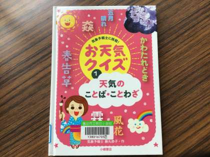 読み語りボランティアの方が、お昼の放送で『お天気クイズ』という気象予報士の方が書いた本を読んでくださいました。秋の空の事や、イチョウやカエデの名前の由来のクイズがありました。学校の図書館に新しく入った本なので、借りて読んでみてくださいとのことです。