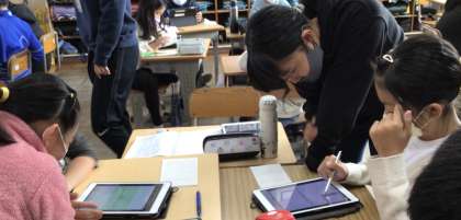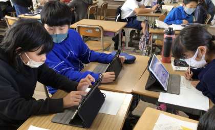 各教科で、ipad を使って随時調べ学習をしています。調べたことは、友達と共有し、学びを深めます。