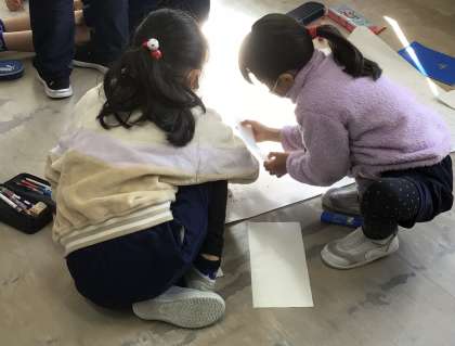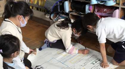 生活科のまちたんけんのまとめをグループごとにしています。
