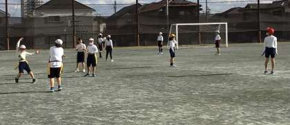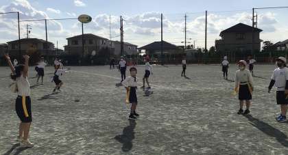 4年生の体育科の授業です。タグラグビーのれんしゅうをしていました。