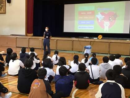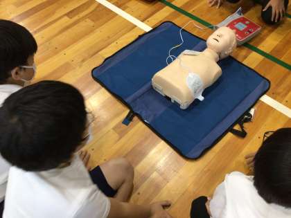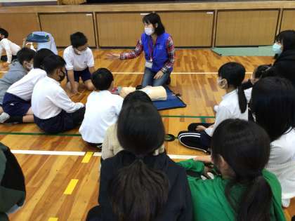 5年生は、消防署から講師を招いて、救命救急講習を受けました。