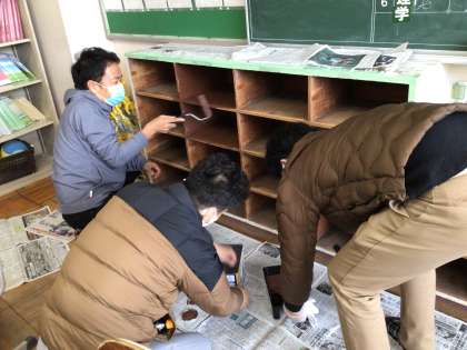 おやじの会のみなさんが、子どもたちの使うロッカーをきれいにしてくださいました。明日27日も午前9時から半日程度行う予定です。一緒におしゃべりしながら、いい汗流しませんか。参加されたい方は、ぜひお越しください。