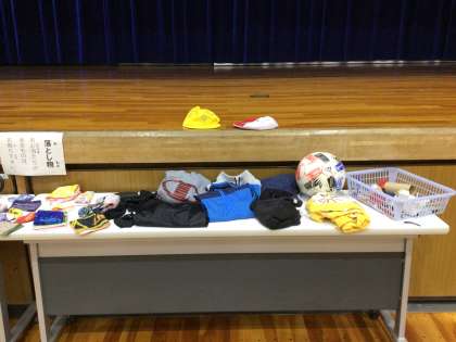 落とし物の展示をしました。1週間保管します。もし、ご自身のものがありましたら、ご連絡ください。