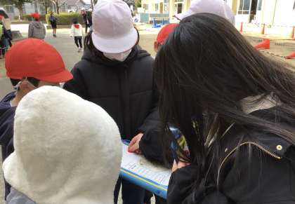 縦割り班、1組が、朝日っ子遊びを楽しみました。6年生が待っているチェックポイントを回って、ミッションがクリアできればシ-ルがもらえます。班で協力して楽しんでいました。明日は2組、明後日は3組が行います。