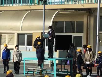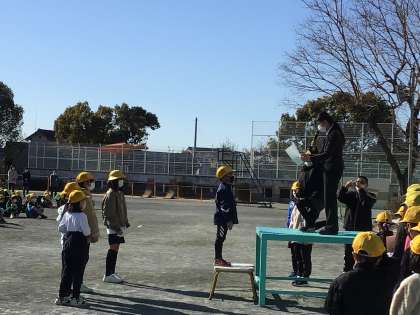 一斉下校時に書初め、文詩集ひまわり、読書感想画などの表彰式がありました。