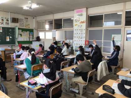 4年生は「金色の魚」という教材で、道徳の学習をしていました。よく考えて発表する子がたくさんいました。