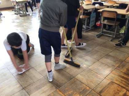 1年間お世話になった教室をきれいにしようと、美カエル週間(清掃強調週間)が始まり、後2日となりました。清掃中に回ってみるとどの子も真剣に掃除に取り組んでいました。