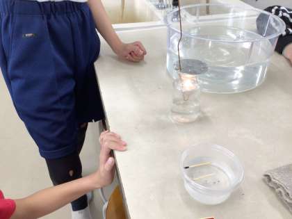 怖々マッチを擦ったり、ろうそくが瓶の中で急に明るくなるのを見てびっくりしたり