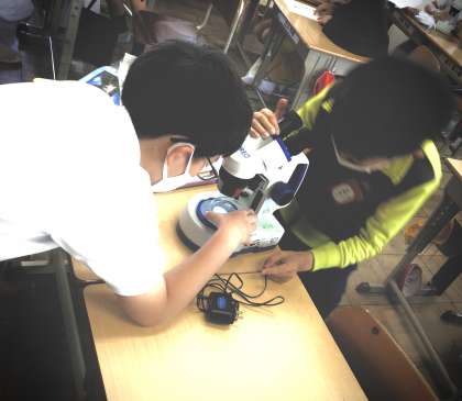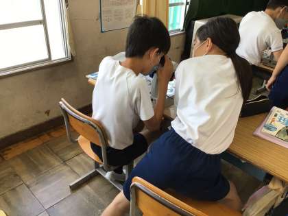 初めて使う顕微鏡にどきどきの表情でした。