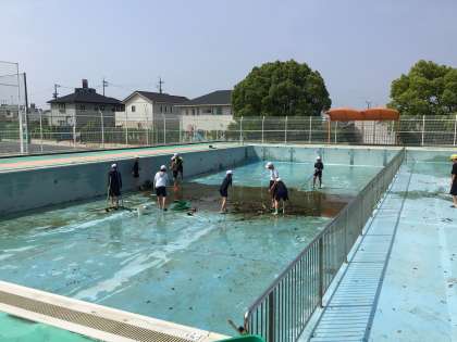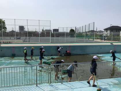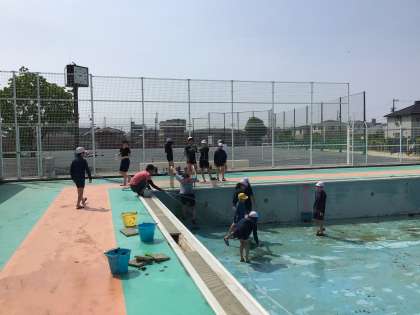 水に濡れるとまだ少し肌寒い中、一生懸命に掃除を