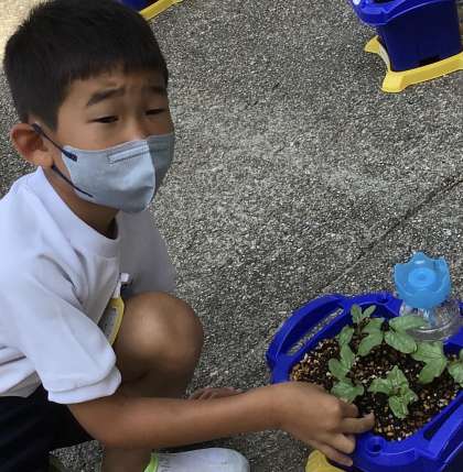 あさがおに触ったり、くらべっこしたりして、愛おしそうに観察していました。