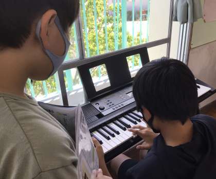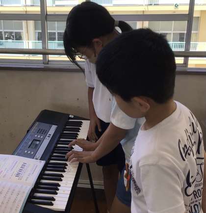 5年生が、短調の音階を、鍵盤で確かめていました。