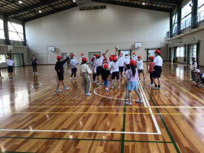 5年生が企画して、2年生を誘って、プチ朝日っ子遊びをしました。たくさんの笑顔と、温かな優しさが体育館中に広がりました。
