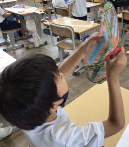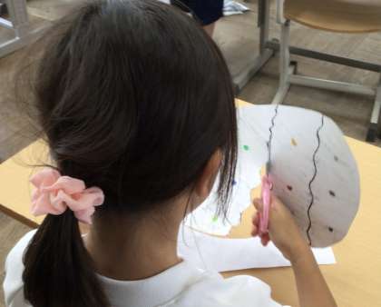 図画工作科、素敵なたまごを描いて、はさみで切りました。この後どうなるのかな?