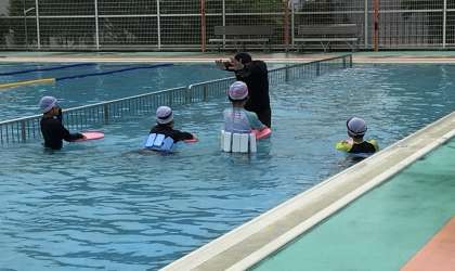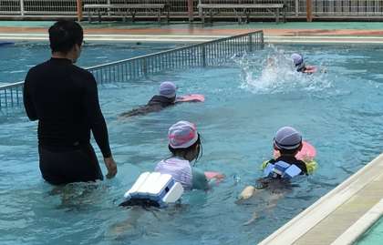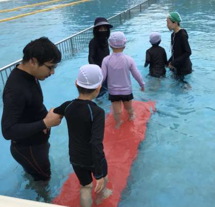 プールでの授業です。ドキドキしながら楽しそうに練習していました。