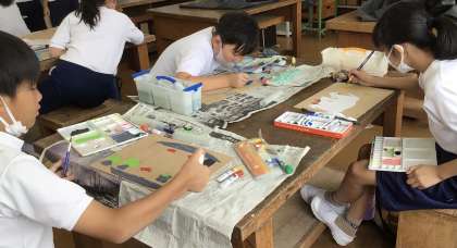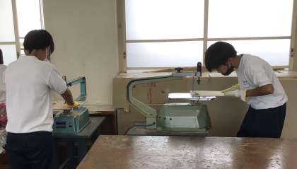 図画工作科、糸のこを使って集中して作品を作っていました。
