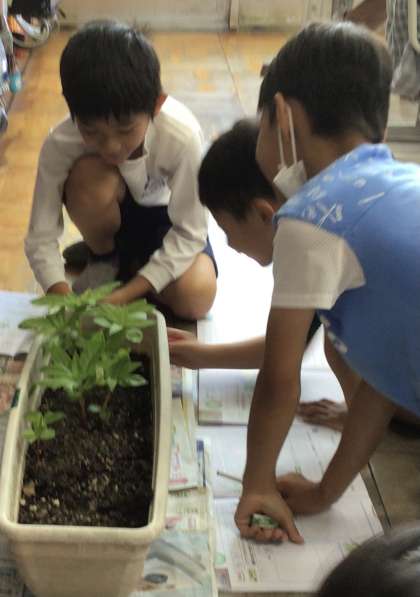 理科 オクラとホウセンカの観察をしていました。