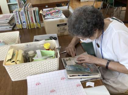 図書館整備ボランティアのみなさんが、本の修理をしてくださいました。人気のある本は、すぐに傷んでしまいます。丁寧な作業ありがとうございました。