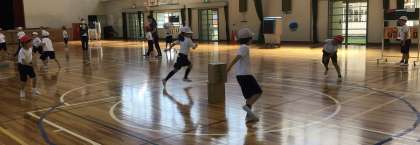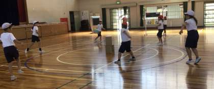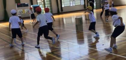 2年生の体育科の研究授業を行いました。グループで協力して楽しそうでした。