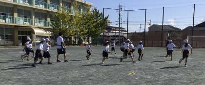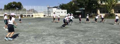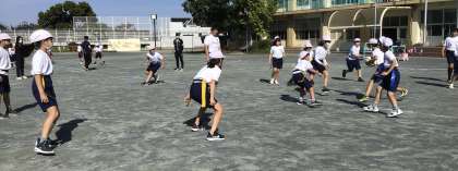 4年生が、トヨタヴェルブリッツのみなさんに、タグラグビーを教えていただきました。