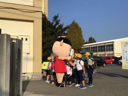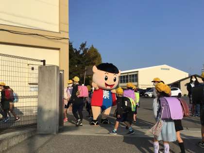 PTAのあいさつ運動で、そうちゃん登場!