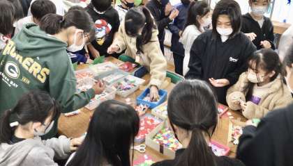 図書館整備ボランティアさんの企画で、クリスマスカード作りをしました。朝日タイムに3、4年生、リフレッシュタイムに、5、6年生が参加しました。どちらも大盛況でした。この日のために、ボランティアさんは、たくさんの準備をしてくださいました。本当にありがとうございます。