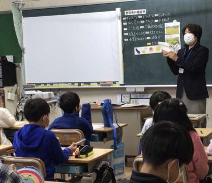 4年生が、栄養職員さんの食の授業を受けました。豊田市で作られているものが、たくさん給食に使われていることを学びました。4時間目の授業だったので、子どもたちは、早く給食を食べたいと言っていました。