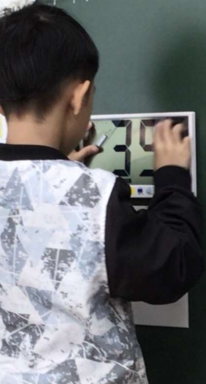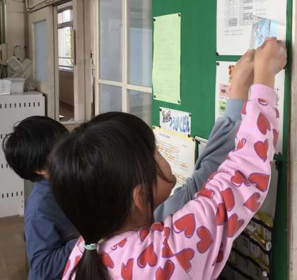 2年生が、算数科の授業で、教室の中にある、長方形や正方形を探しました。
