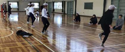 6年生が、体育科で、縄跳びをしていました。