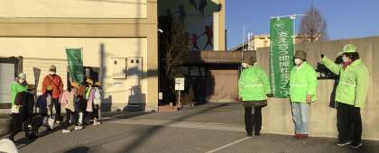 主任児童委員、民生児童委員のみなさんがあいさつ運動をしてくださいました。一段と寒い日でしたが、明るい笑顔と声が、子どもたちを元気にしていました。