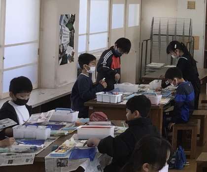 筆や歯ブラシを使って、花火や宇宙を描きました。
